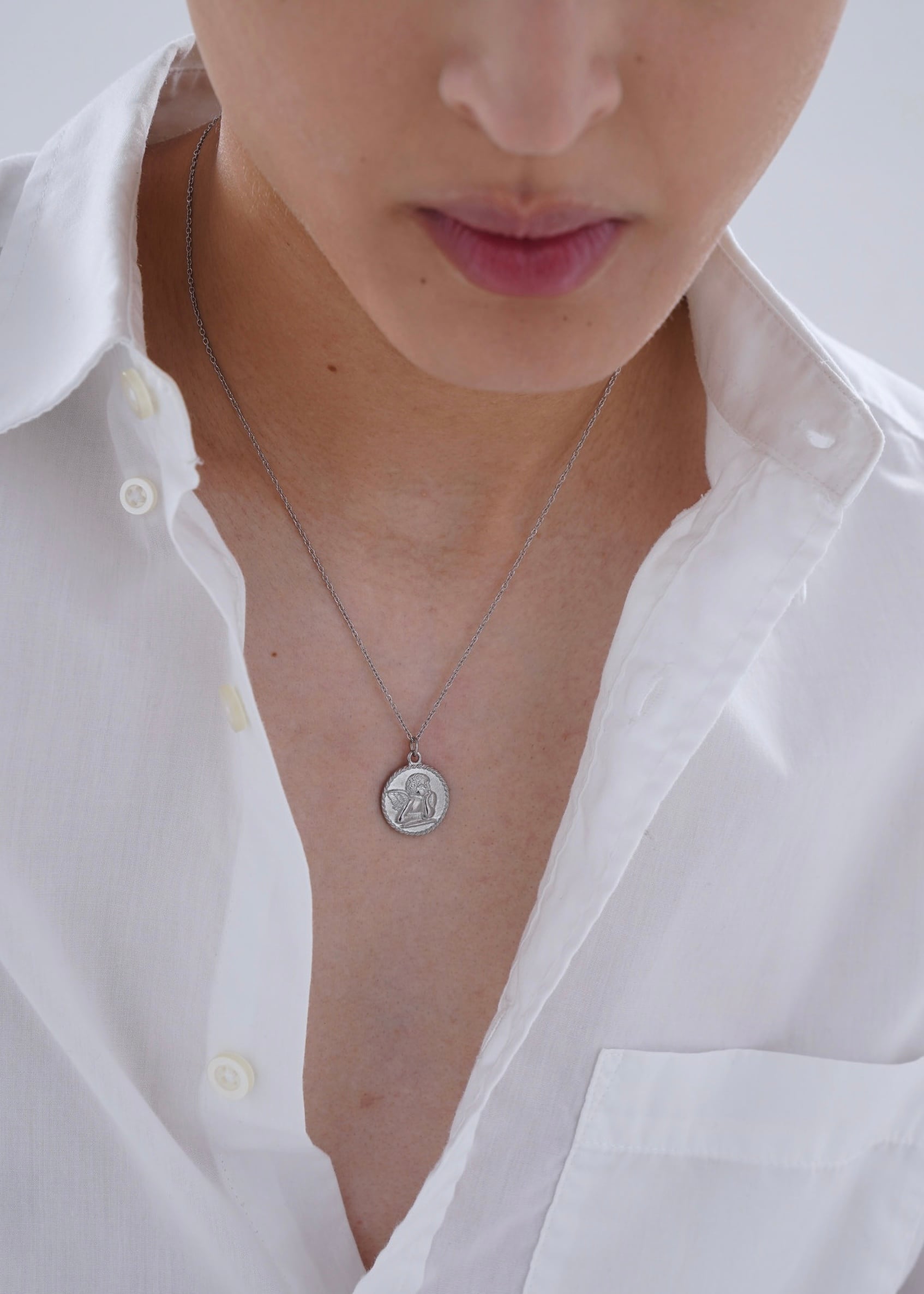 316L angel coin necklace【SILVER】#n57