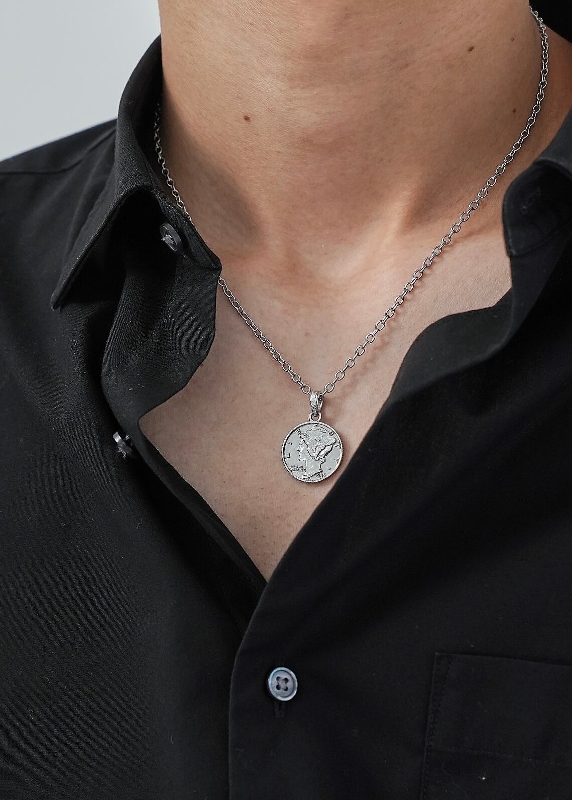 316L Hawaiian liberty coin necklace[SILVER]#h39